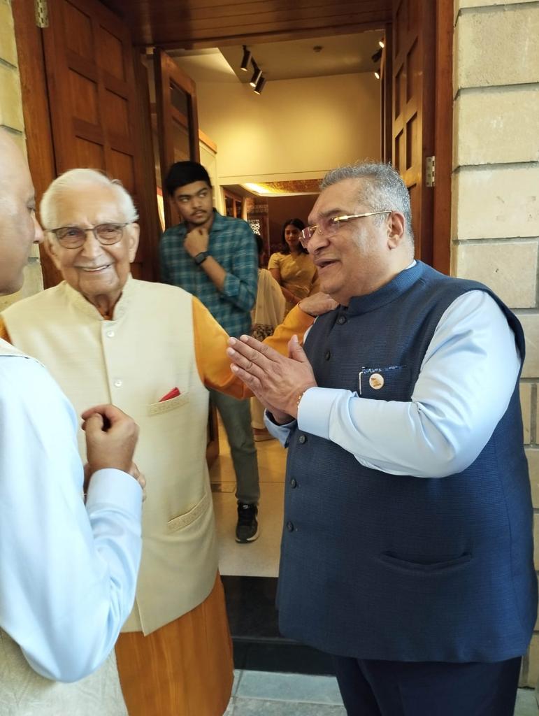 વિશ્વ લોહાણા મહાપરિષદ ના પ્રમુખ – ટ્રસ્ટી શ્રી સતીષભાઈ વિઠલાણીએ સૌરાષ્ટ્ર સિમેન્ટ ના ચેરમેન શ્રી મહેન્દ્રભાઈ મહેતા,એકઝીકયુટીવ વાઇસ ચેરમેન શ્રી જયભાઇ મહેતા સાથે હરસુખભાઈ , રાજુભાઇ બુદ્ધદેવ, હર્ષિતભાઈ રુઘાણી ,ડો.અનિલ ભાઈ દેવાણી દિલીપભાઈ ગાજરા,મુકેશભાઇ ઠક્કર ,વલ્લભભાઈ બોરીચાંગર સાથે પોરબંદર ખાતે તા -૯-૧૨-૨૦૨૨ શુક્રવાર ના રોજ આર્યકન્યા ગુરુકુલ પોરબંદર માં અદભુત કાર્યક્રમો માણ્યા હતા અને રાત્રે સ્વસ્તિક ભવન ખાતે ચીફ ગેસ્ટ શ્રીમતી સોનલબેન અમિતભાઈ શાહ, દેશવિદેશ થી પધારેલા મહાનુભાવો , જુહીબેન ચાવલા અને પરિવાર , મહેતા પરિવાર ના સભ્યો તથા શહેર ના ગણમાન્ય મહાનુભાવો ની સાથે રાત્રિ જમણના આનંદ ની સાથે સાથે સૌને હળવામળવા નુ સૌભાગ્ય પણ પ્રાપ્ત કર્યું હતું.