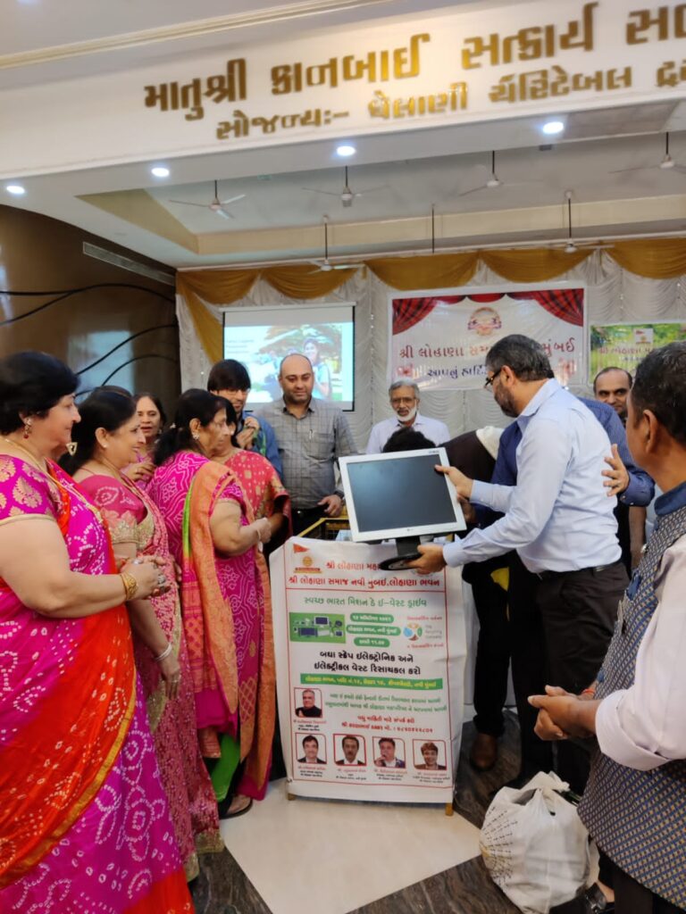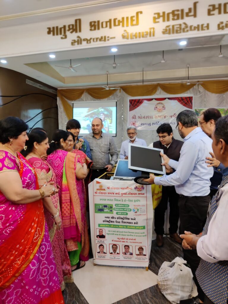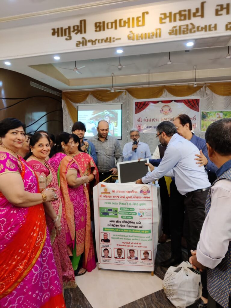 શ્રી કરણભાઇ એ E-Waste ને કેવી રીતે Recycle પ્રોસેસ કરીને Best from Waste ના creation ને ડિજિટલ માધ્યમે સ્ક્રીન દર્શિત કરી સદુપયોગિતા સમજાવી હતી. આ અભિયાન અગ્રતા આપી નવી મુંબઈ ના જ્ઞાતિજનોએ સ્વયં ઉપસ્થિત રહી ડિજિટલ gadgets જેવા કે વાયર, કમ્પ્યુટર, પ્રિન્ટર, લેપટોપ, મોબાઇલસ વગેરે નો ટનબદ્ધ સામગ્રી નો ઢગલો કરી E-Waste cage ને છલકાવી દીધી હતી.