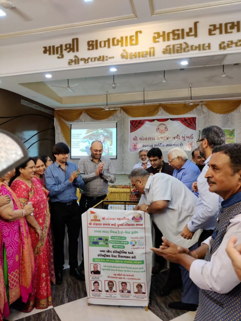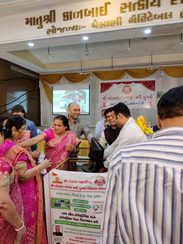શ્રી લોહાણા મહાપરિષદ પર્યાવરણ સમિતિ અને શ્રી લોહાણા સમાજ નવી મુંબઈ દ્વારા સામાન્ય નાગરિકને અને જ્ઞાતિજનોને ઉજાગર કરવા E-Waste Collection & Recycling Drive અને પર્યાવરણ સ્વછતા અભિયાન ગુરૂવાર તા. ૧૪ ઓક્ટોબર ૨૦૨૧ ના રોજે સવારે ૧૧:૦૦ કલાકે શ્રી લોહાણા ભવન,કોપરખેરણા, નવી મુંબઈ ખાતે પહેલે માળે વાતનુકૂલિત સભાગૃહ ખાતે ગોઠવવામાં આવી હતી. LMP પર્યાવરણ સમિતિના ઉપાધ્યક્ષ શ્રીકરણભાઈ ઠક્કર, શ્રી લોહાણા સમાજ નવી મુંબઈના પ્રમુખશ્રી તરુણભાઈ કોટક અને LMP મહારાષ્ટ્ર ઝોનલ પ્રમુખશ્રી ધર્મેન્દ્રભાઈ કારિયાના માર્ગદર્શન હેઠળ આ આયોજન કરવામાં આવ્યું હતું. કાર્યક્રમ નું સંચાલન LMP મહારાષ્ટ્ર ઝોનલ મંત્રીશ્રી હર્ષદ મણિધરે સાંભળ્યું હતું તેમજ LMP પ્રમુખશ્રી સતિષભાઈ વિઠલાણી અને LMP ટ્રસ્ટી એડવોકેટ શ્રી મોહનભાઈ ઠક્કરે અધ્યક્ષ સ્થાન સાંભળ્યું હતું.