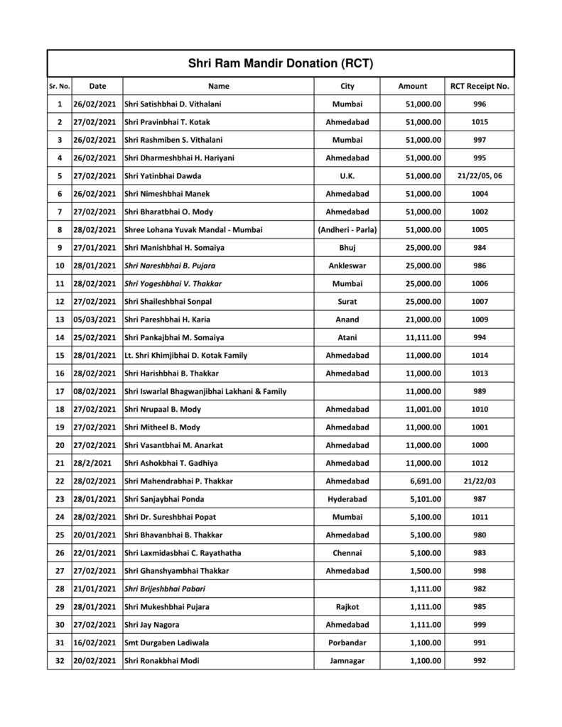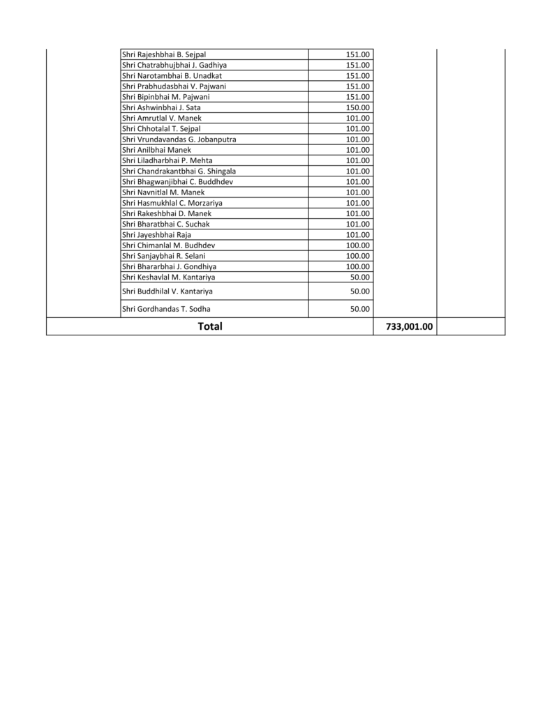 ઉપરોક્ત અનુદાન આપનાર દાતાશ્રીઓની યાદી નીચે મુજબ છે.
